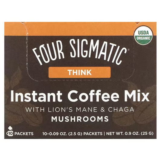 Four Sigmatic, Think, Instant Coffee Mix with Lion's Mane & Chaga Mushrooms, 10 Packets, 0.09 oz (2.5 g) Each