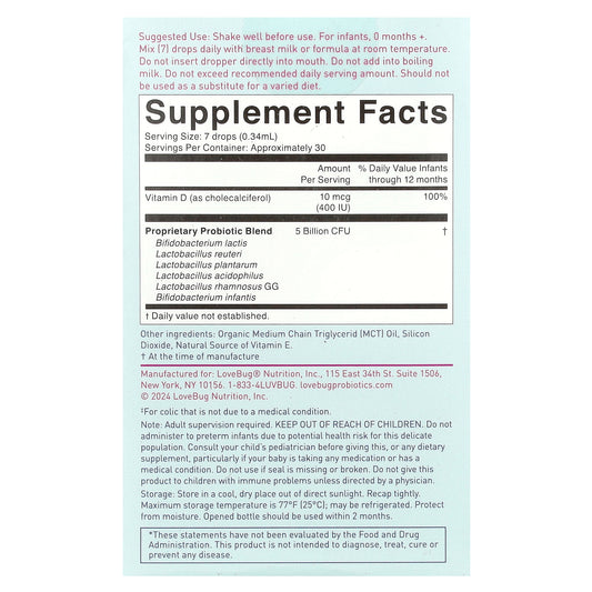 LoveBug Probiotics Baby Probiotic Drops with Vitamin D 0.34 fl oz (10 ml)