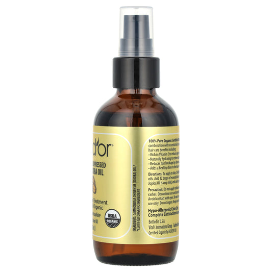Pura D'or 100% Pure Cold Pressed Organic Jojoba Oil 4 fl oz (118 ml)