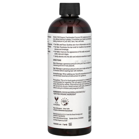 Pura D'or Organic Fractionated Coconut Oil (MCT) 16 fl oz (473 ml)