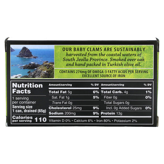 Crown Prince Natural Smoked Baby Clams In Olive Oil 3 oz (85 g)