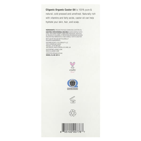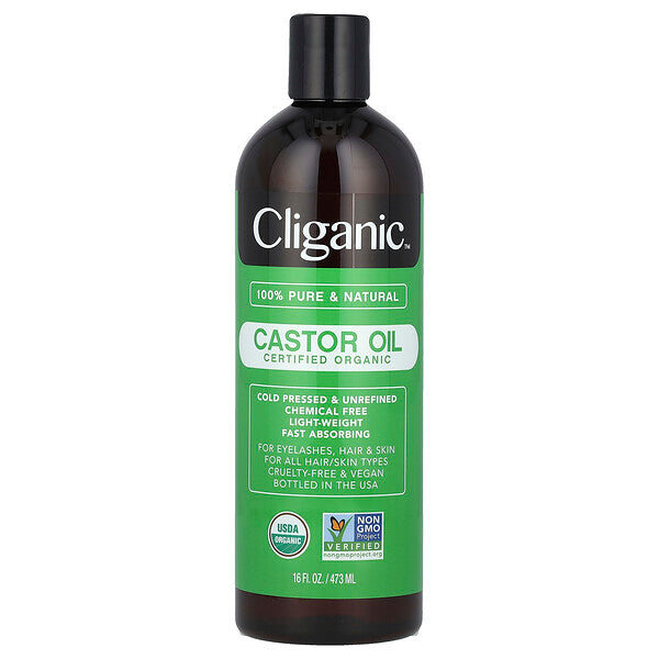 Cliganic Organic Castor Oil is 100% pure & natural, cold pressed and unrefined. Naturally rich with vitamins and fatty acids, castor oil can help hydrate your skin, hair, and scalp.
