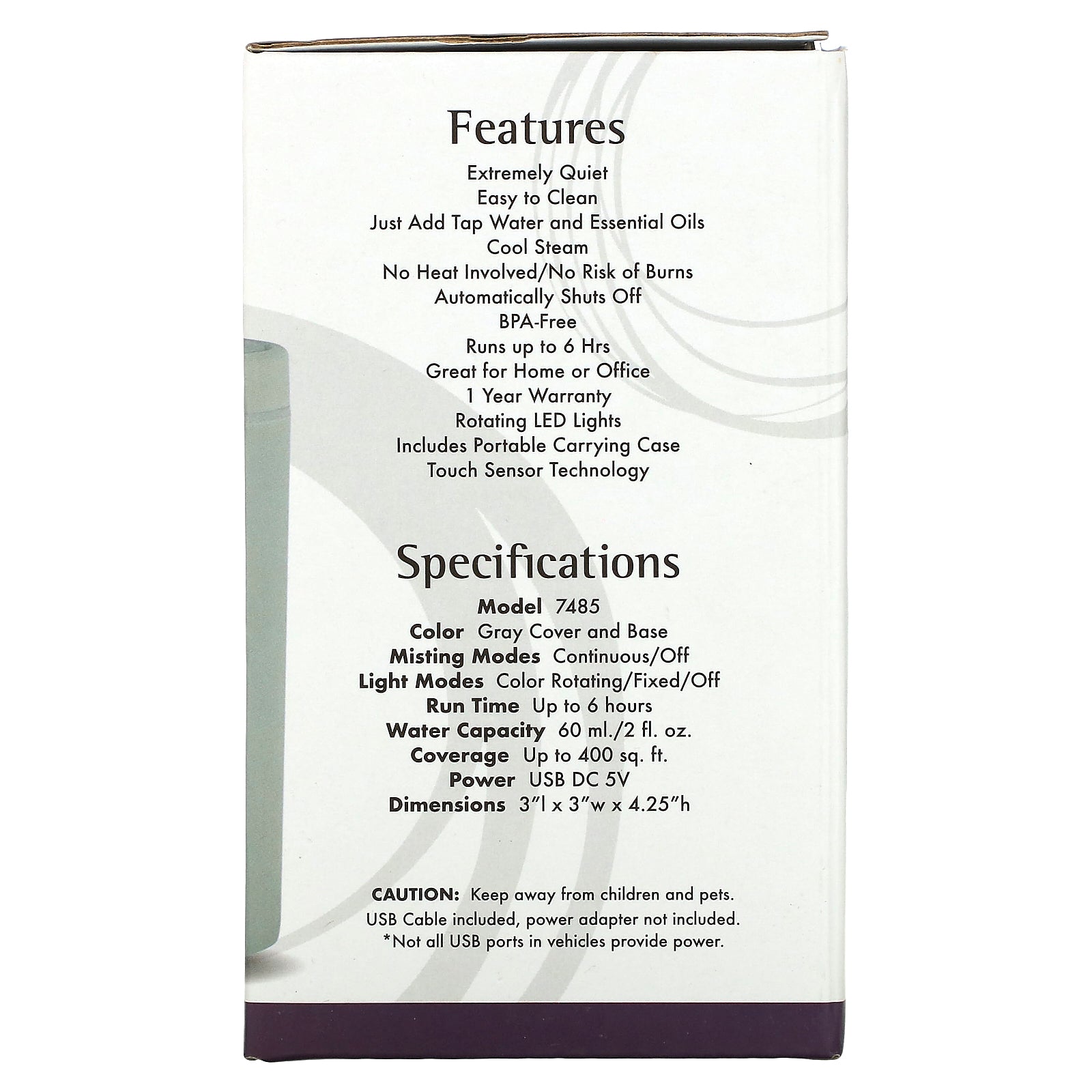 NOW® Solutions Portable USB Oil Diffuser unites scientific innovation with the timeless tradition of aromatherapy to create a portable, BPA-free diffuser that uses only tap water and your favorite essential oils. Instead of heat, this contemporary diffuser utilizes high frequency, ultrasonic electrical vibrations to create an ultra-fine mist, which helps to maintain essential oil integrity and holistic properties. With an automatic shut-off and up to 6 hours of whisper-quiet operation, this portable diffuser makes enjoying aromatherapy on-the-go a breeze.