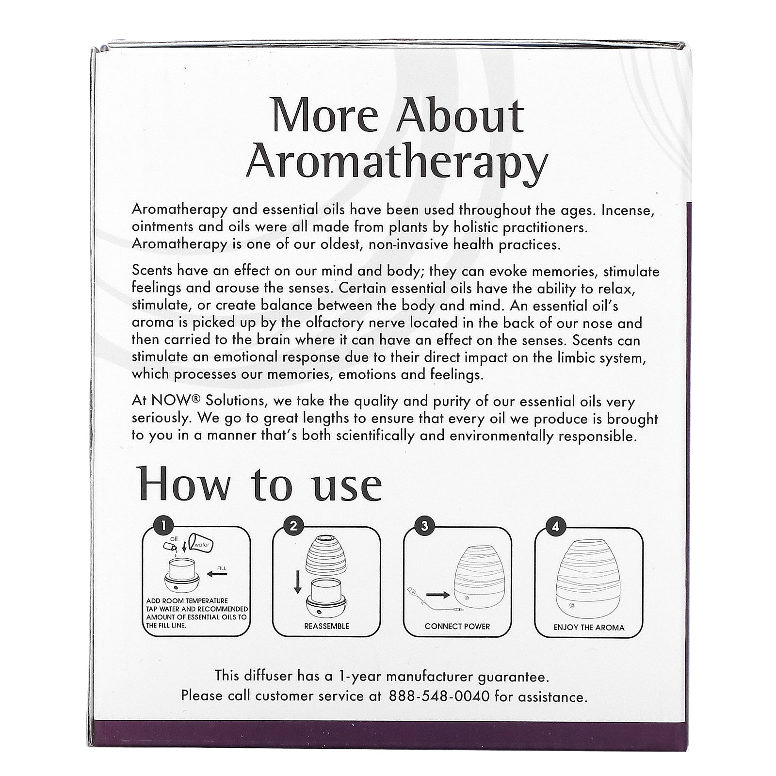 NOW® Solutions Ultrasonic USB Diffuser unites scientific innovation with the timeless tradition of aromatherapy to create a BPA-free diffuser that uses only tap water and your favorite essential oils. Instead of heat, this contemporary diffuser utilizes high frequency ultrasonic electrical vibrations to create an ultra-fine mist, which helps to maintain essential oil integrity and holistic properties. With an automatic shut-off and up to four hours of whisper-quiet operation, this attractive diffuser complements your healthy lifestyle and is ideal for home and office.