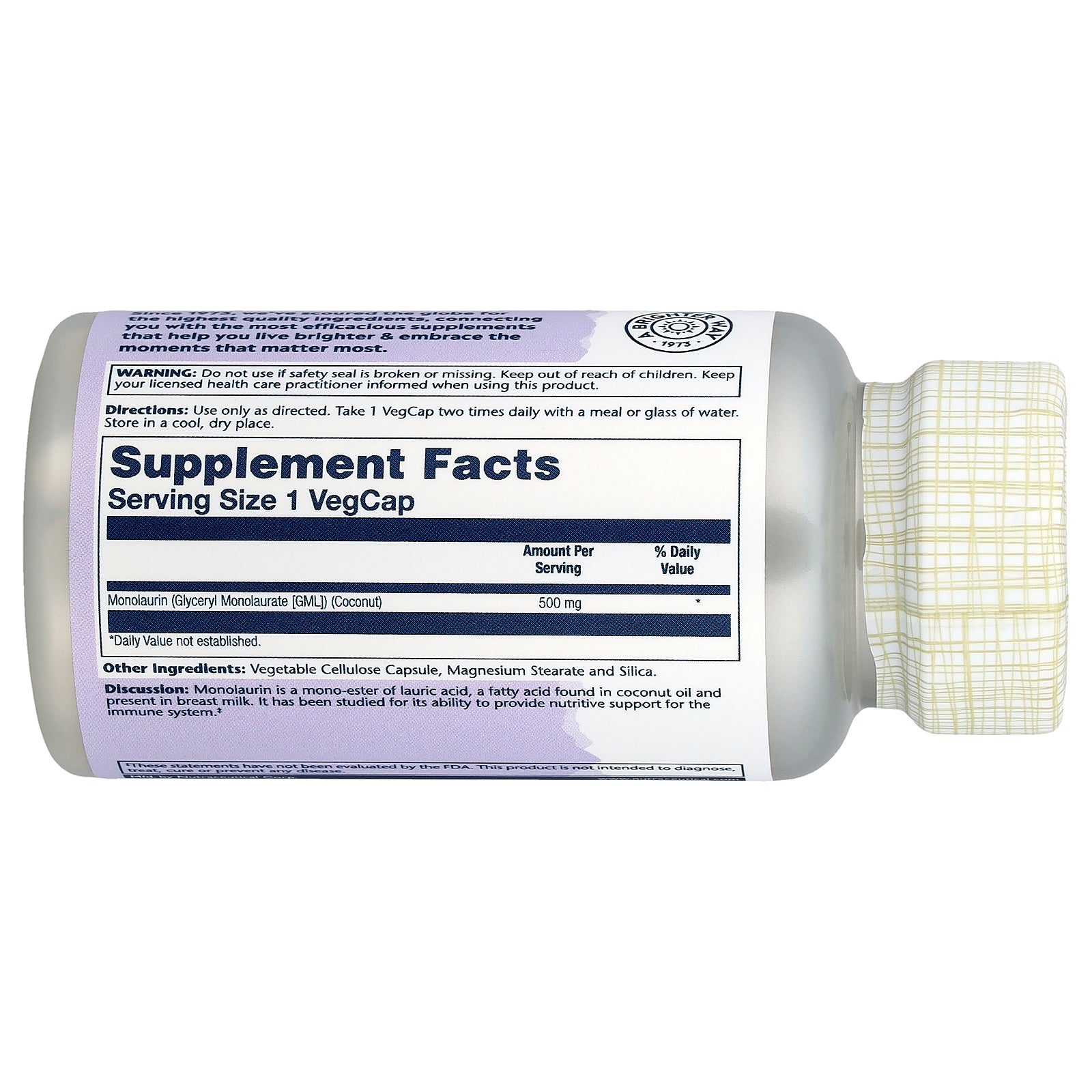 Discussion: Monolaurin is a mono-ester of lauric acid, a fatty acid found in coconut oil and present in breast milk. It has been studied for its ability to provide nutritive support for the immune system.